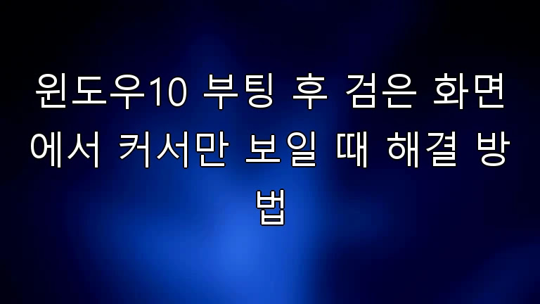 윈도우10 부팅 후 검은 화면에서 커서만 움직이는 경우는 드라이버 문제, 셸(explorer.exe) 로딩 실패, 서비스(AppReadiness 등) 지연, 손상된 사용자 프로필, 업데이트 문제 등 복합적인 원인을 가질 수 있다.