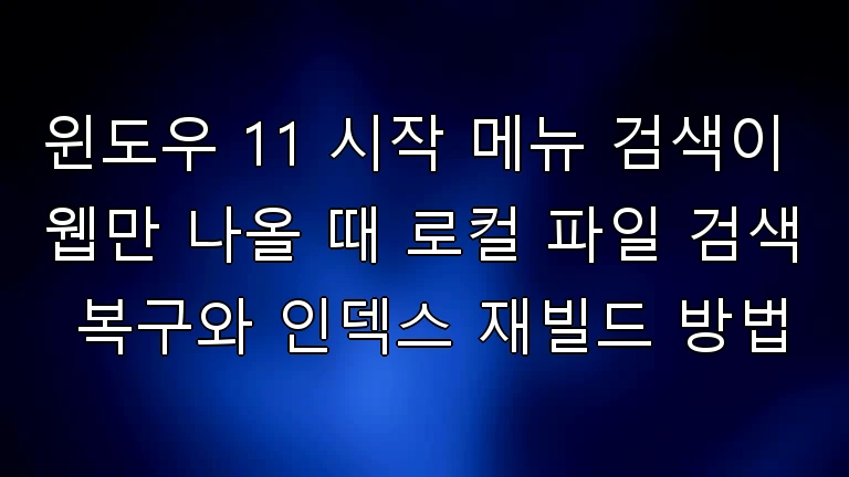 이 글의 목적은 윈도우 11에서 시작 메뉴 검색 결과가 웹 결과만 표시되거나 로컬 앱·파일·설정이 거의 나오지 않을 때, Windows Search 인덱스와 구성요소를 정상화하여 로컬 검색을 복구하는 실무 절차를 단계별로 정리하는 것이다.