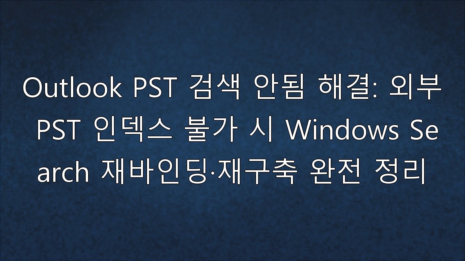 이 글의 목적은 Outlook에서 외부(추가) PST가 검색되지 않을 때, Windows Search와 Outlook 인덱싱 연결(재바인딩)을 정상화하고 인덱스를 올바르게 재구축하여 검색 결과 누락을 근본적으로 해결하는 절차를 현장에서 그대로 따라 할 수 있도록 정리하는 것이다.