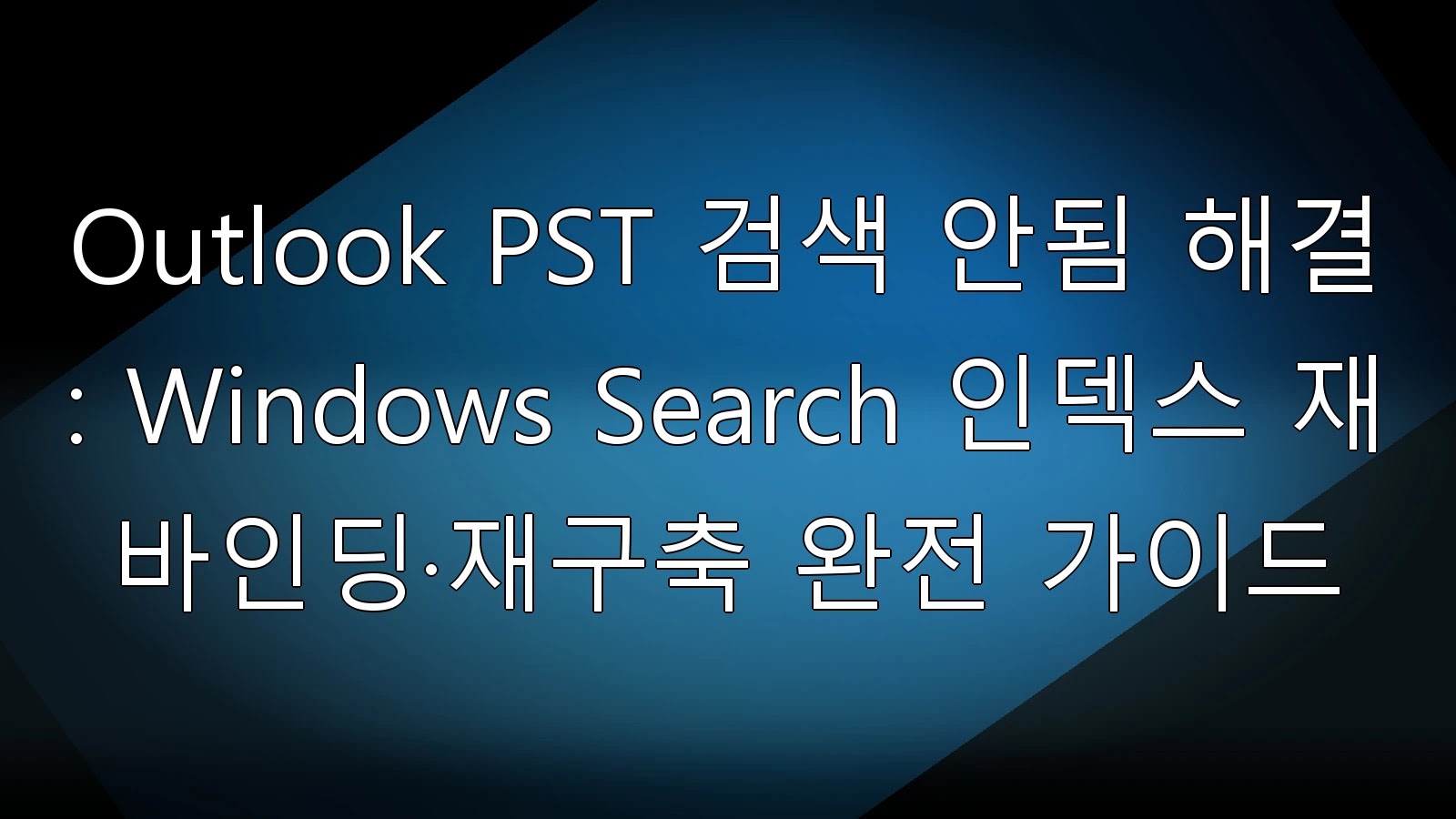 이 글의 목적은 Outlook에서 외부 PST(보관용 데이터 파일)가 검색되지 않을 때, Windows Search 인덱스를 Outlook에 다시 연결(재바인딩)하고 정상적으로 재인덱싱되도록 복구 절차를 현장에서 그대로 적용할 수 있게 정리하는 것이다.