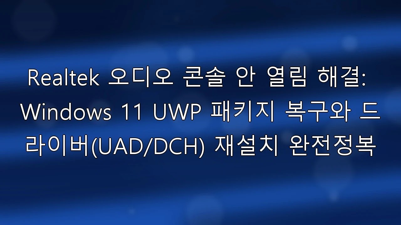이 글의 목적은 Windows 10/11에서 Realtek 오디오 콘솔(Realtek Audio Console/Realtek Audio Control)이 실행되지 않거나 검은 화면으로 꺼지는 문제를 UWP 패키지(AppX) 관점과 Realtek UAD/DCH 드라이버 스택 관점에서 분리 진단하여, 현장에서 바로 복구할 수 있는 재현 가능한 절차로 정리하는 것이다.